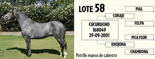 Lote 58 CUCURUCHO potrillo manso de cabestro hijo del C