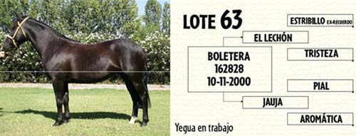 Lote 63 BOLETERA yegua en trabajo hija del Campeón