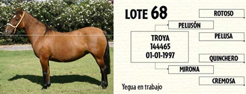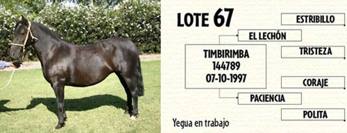 Lote 67 TIMBIRIMBA yegua en trabajo Hija del Campeón