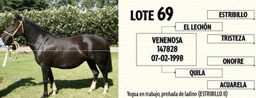 Lote 69 VENENOSA yegua en trabajo y preñada de Ladino