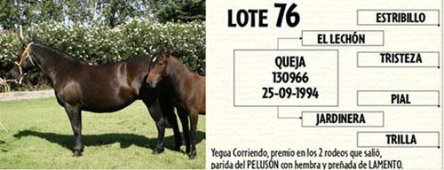 Lote 76 QUEJA yegua corriendo premiada en los dos únicos