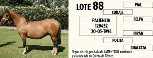 Lote 88 PACIENCIA yegua corriendo de solo 11 años